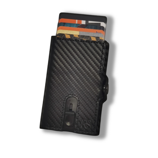 "PARIS" Porte-cartes Simili cuir effet Carbone Noir et aluminium.