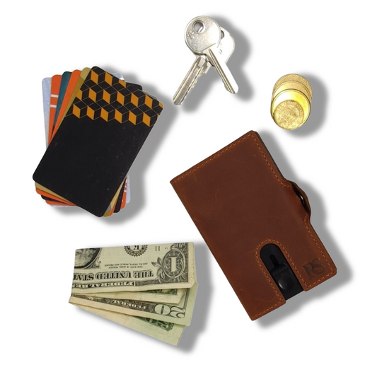 "OTTAWA" Porte-cartes en Cuir Vintage Camel et aluminium.