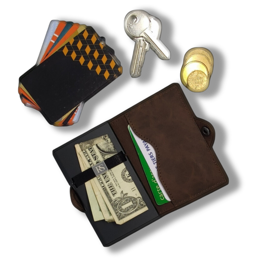 "MONACO" Porte-cartes en Cuir Vintage Marron et aluminium.