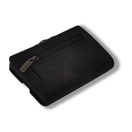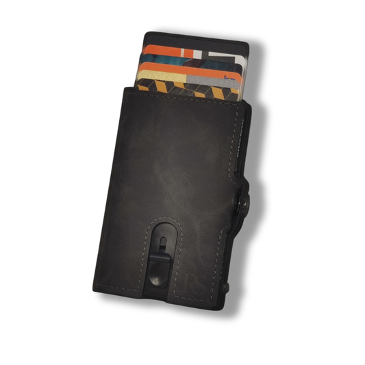 "MADRID" Porte-cartes en Cuir Vintage Noir et aluminium.